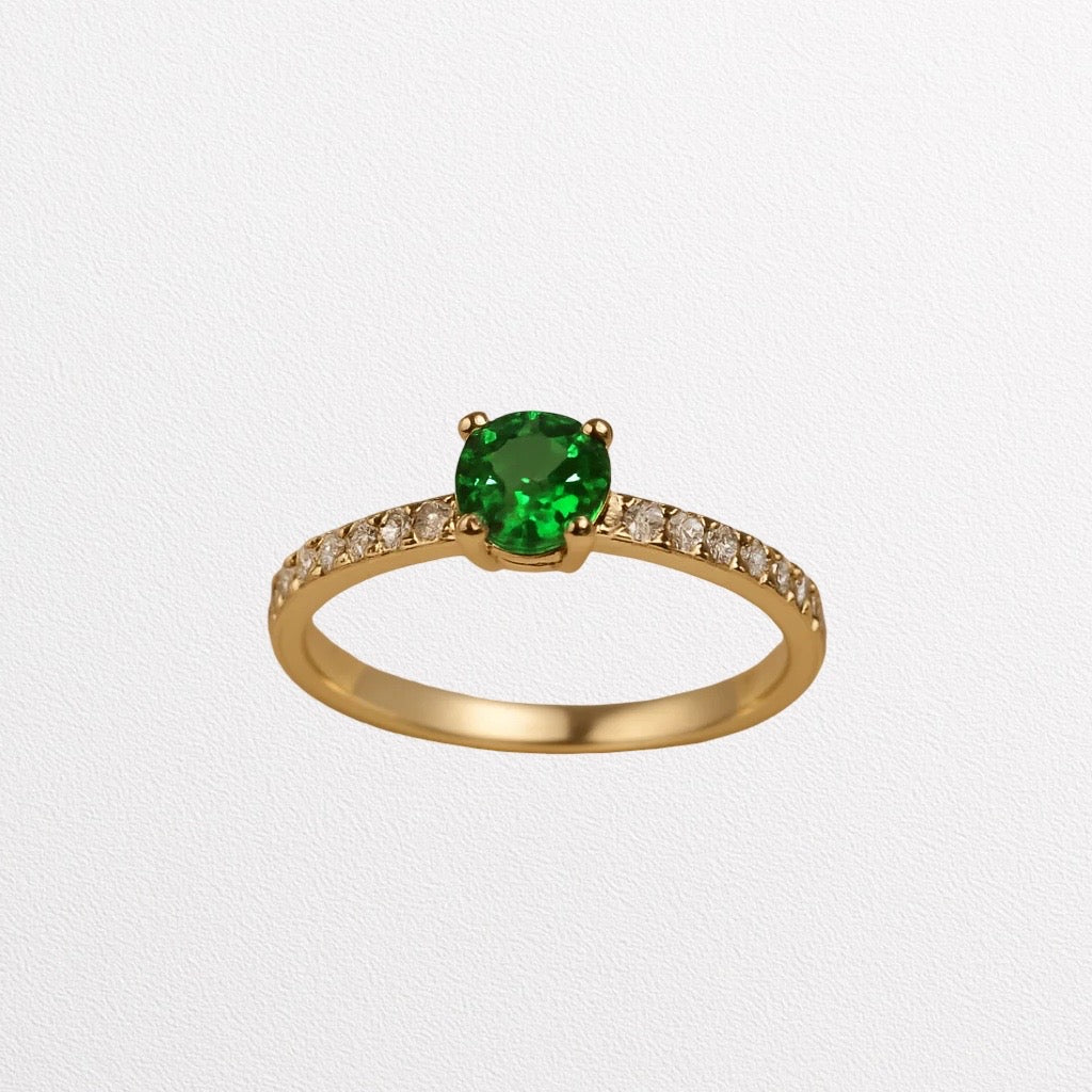 Prsten od 14k žutog zlata s tsavoritom (0,27 ct) i dijamantima (0,072 ct). Luksuzan dizajn, idealan za poklon ili zaruke.