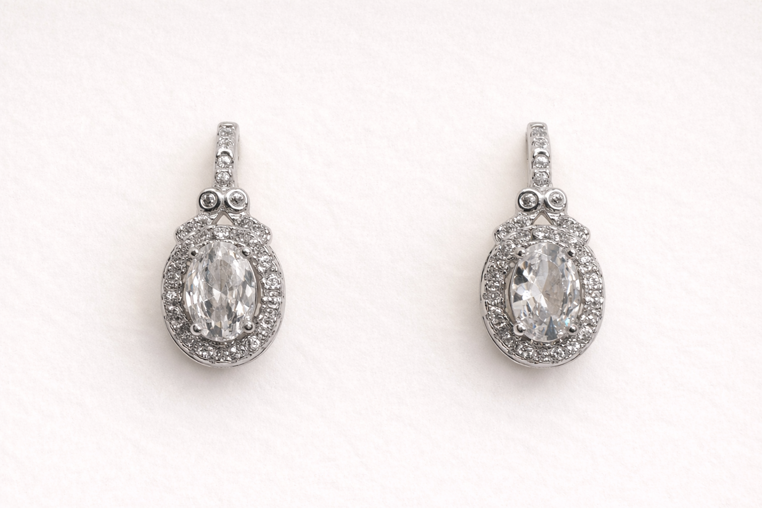 Srebrne naušnice s ovalnim cirkonom i halo okvirom