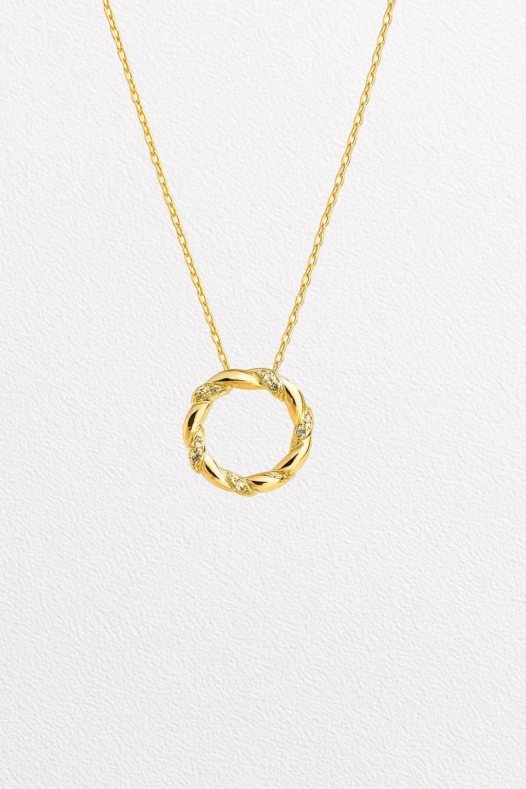 Zlatna ogrlica s dijamantima u pletenom krugu