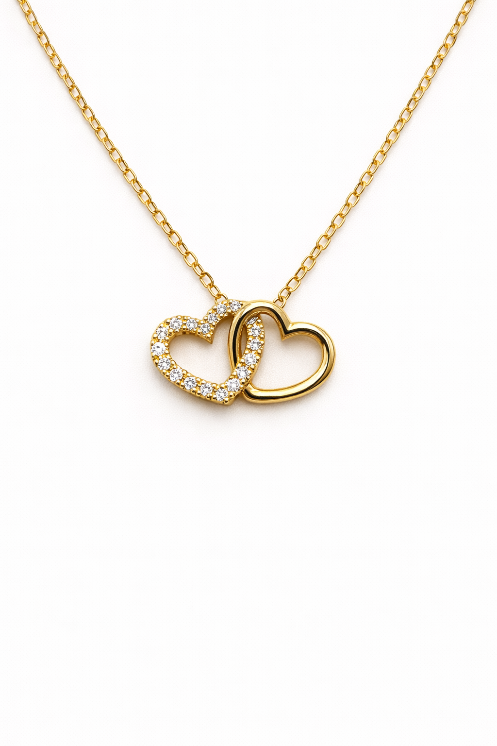 Zlatna ogrlica s dvostrukim srcima i dijamantima