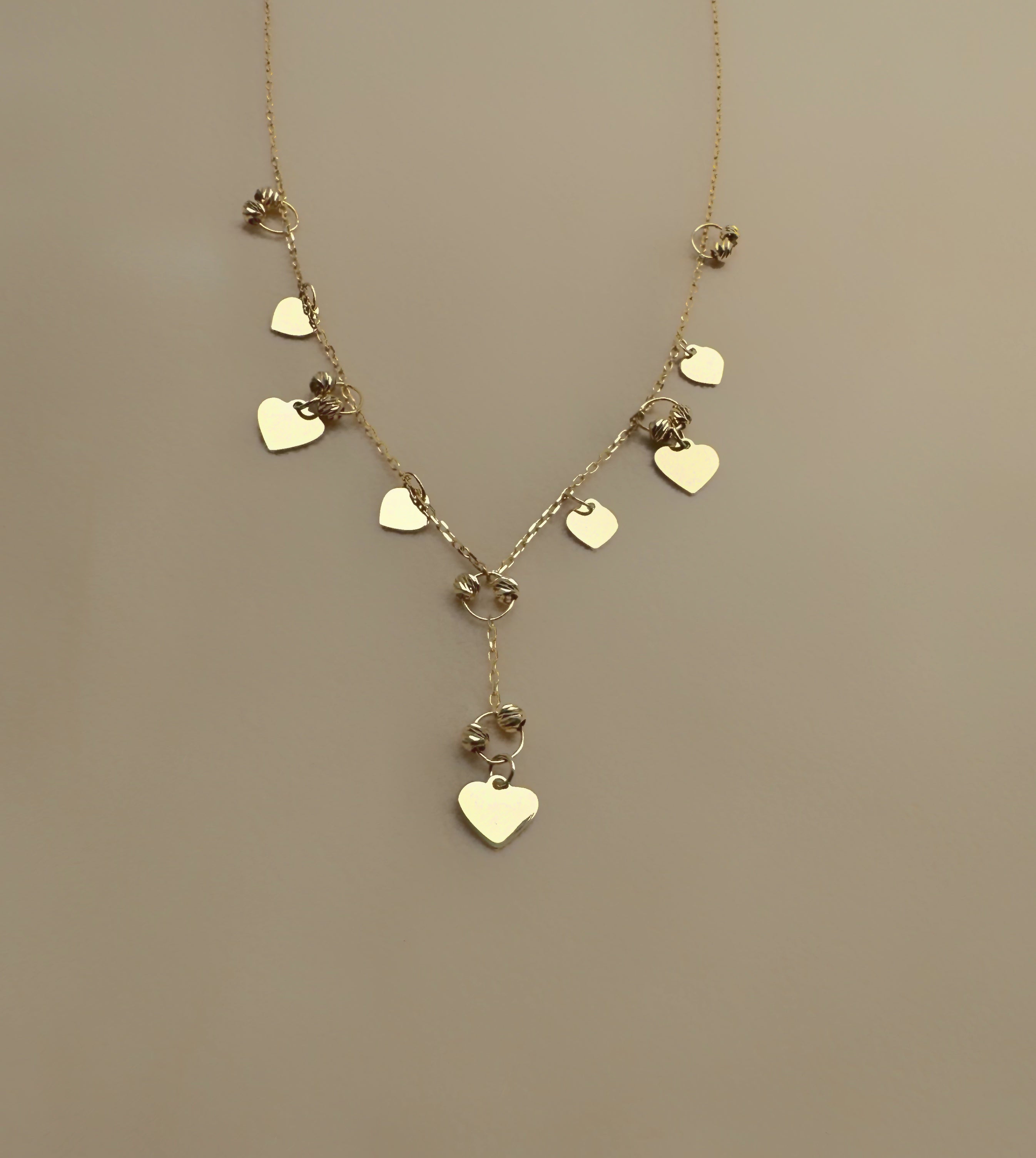 Zlatna ogrlica s privjescima u obliku srca